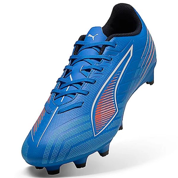 Confectionné avec un minimum de 30 % de matériaux recyclés.À quel point l'ULTRA 6 PLAY est-elle rapide ? Attache ta ceinture et libère ta vitesse grâce à la semelle extérieure SPEEDSYSTEM et aux crampons FastTrax de PUMA. Conçues pour les terrains fermes et synthétiques, ces chaussures offrent une adhérence et une stabilité inégalées. La tige synthétique légère et la semelle intérieure SOFTFOAM+ font la différence au moment de renverser le cours du match.